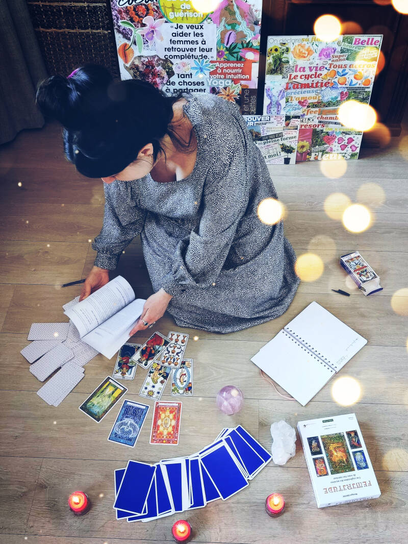 Je suis totalement et depuis toujours fascinée par l’ésotérisme, mordue par les spiritualités d’où qu’elles viennent. Et je travaille à appliquer dans ma vie cet infini cadeau de l’univers qu’est le fait de se sentir portée par une foi aussi profonde en la vie. C’est donc très naturellement que mes affinités avec le tarot et les astres m’ont conduite à étudier la tarologie et l’astrologie. Alors ce compte instagram, ce site, ce blog, c’est ma façon de faire quelque chose de tout ce qui me passionne et me demande d’oser sortir du confort de ma pratique personnelle, d’oser dire qui je suis, d’oser nommer mes accomplissements, exprimer ce qui me fait vibrer dans cette vie et entreprendre.